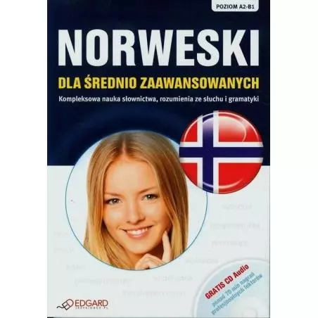 NORWESKI dla średnio zaawansowanych to kurs, z którym:- aktywnie uczysz się języka- poznajesz niezbędne słownictwo- ćwiczysz zastosowanie gramatyki- rozwiązujesz różnorodne ćwiczenia- doskonalisz rozumienie ze słuchu- uczysz się konstruować wypowiedzi pisemneKurs przeznaczony jest dla tych, którzy opanowali podstawy języka norweskiego i chcą kontynuować naukę na poziomie średnio zaawansowanym (A2-B1).Książka (208 stron) opiera się na unikalnej metodzie aktywnej nauki. Dzięki niej szybko i skutecznie udoskonalisz wszystkie kompetencje językowe. Kurs pozwoli ci jednocześnie szlifować praktyczną znajomość języka, poszerzać zasób słownictwa, rozwijać umiejętności: rozumienia tekstów pisanych, rozumienia ze słuchu i tworzenia wypowiedzi pisemnych.W 14 rozdziałach tematycznych znajdziesz: ciekawe teksty, przystępnie wyjaśnioną gramatykę w pigułce, dialogi sytuacyjne, porcję słówek (także tych z języka potocznego), liczne ćwiczenia leksykalne i gramatyczne, a także interesujące informacje o kulturze norweskiej. Dla ułatwienia nauki na końcu każdego rozdziału umieszczono praktyczny słowniczek. Książkę zamyka rozdział podsumowujący z 14 tekstami, poświęcony zadaniom na rozumienie tekstu czytanego i rozumienie ze słuchu.Dodatkowo do kursu dołączono płytę CD Audio, która zawiera nagrania w wykonaniu profesjonalnych lektorów. Znajdują się na niej teksty otwierające każdy z rozdziałów, ciekawostki na temat Norwegii. Słuchanie nagrań ułatwia naukę współczesnego języka norweskiego i płynne komunikowanie się.
