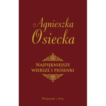 Wybór najpopularniejszych i najpiękniejszych piosenek oraz wierszy polskiej poetki! Agnieszka Osiecka miała wrodzony talent do pisania wierszy, które stawały się od razu chwytliwymi przebojami. Śpiewają je już od dziesięcioleci kolejne pokolenia, a ostatnio przypomnieli je publiczności na nowo . Kasia Nosowska, Stanisław Soyka, Grabaż i Strachy na Lachy oraz zespół Raz Dwa Trzy. W niniejszym zbiorze, wśród kilkuset lirycznych pereł, znajdują się tak znane utwory, jak .: "Niech żyje bal!", "Oczy tej małej", "Małgośka", "Piosenka o okularnikach", "Na zakręcie", "Czy te oczy mogą kłamać?", "Kochankowie z ulicy Kamiennej", "Chwalmy Pana", "Uciekaj, moje serce". Nota wydawnicza Wybór wierszy i piosenek zamieszczonych w niniejszym tomie oparto na dwutomowym wydaniu wierszy zebranych Agnieszki Osieckiej, które ukazało się nakładem wydawnictwa Prószyński i S-ka w roku 2009 pt. "Nowa miłość – wiersze prawie wszystkie". Zachowano przyjęty wówczas chronologiczny podział na tomiki oraz alfabetyczny układ wierszy, rezygnując z datowania oraz przypisów. Agnieszka Osiecka (1936-1997) – polska poetka, autorka tekstów piosenek, pisarka, reżyser teatralny i telewizyjny, dziennikarka. Od 1954 roku związana była ze Studenckim Teatrem Satyryków (STS), gdzie zadebiutowała jako autorka tekstów piosenek. Prowadziła w Polskim Radiu Radiowe Studio Piosenki, które wydało ponad 500 piosenek i pozwoliło na wypromowanie wielu wielkich gwiazd polskiej estrady. Od 1994 roku była związana z Teatrem Atelier w Sopocie, dla którego napisała swoje ostatnie sztuki i songi. Dorobkiem Agnieszki Osieckiej zajmuje się założona przez córkę poetki Agatę Passent Fundacja Okularnicy. Pośmiertnie została odznaczona przez Prezydenta RP Krzyżem Komandorskim Orderu Odrodzenia Polski.