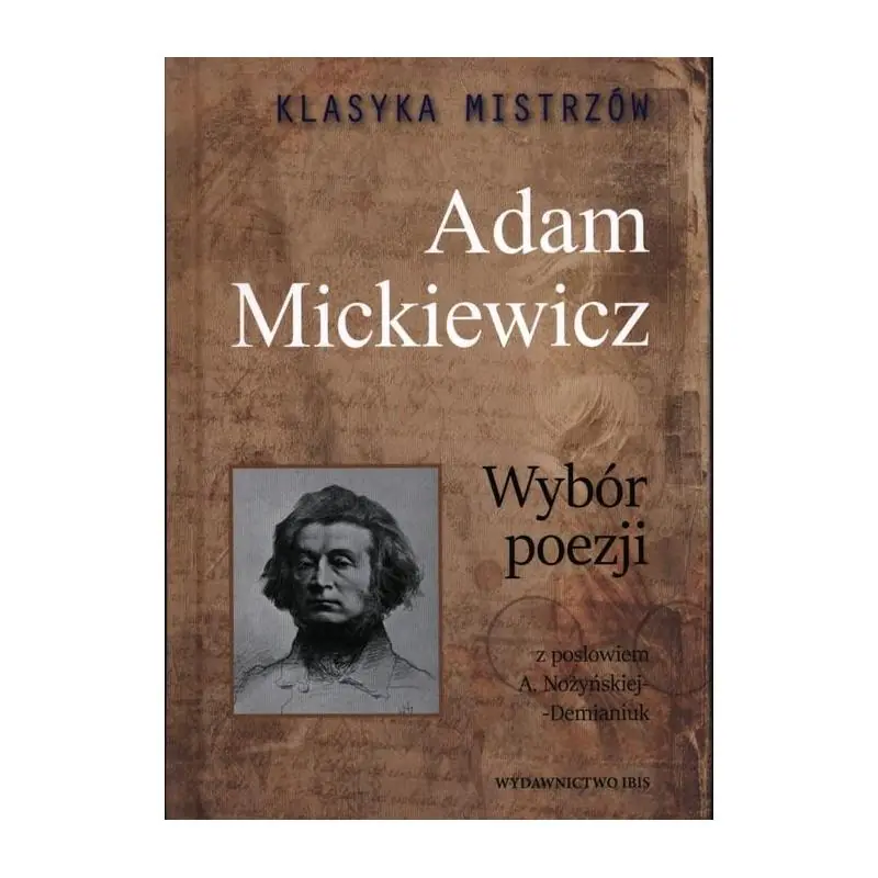Prezentowana książka z serii Klasyka mistrzów to wybór poezji Adama Mickiewicza, w której zgromadzono ponadczasowe utwory poety, które na stałe wpisały się do kanonu literatury polskiej. To wiersze, które często zachwycają, wzruszają, ale też przede wszystkim zmuszają do rozważań i refleksji. Tomik podzielono na części odwzorowujące okresy życia i twórczości Adama Mickiewicza m.in. etap wileńsko-kowieński, etap rosyjski, etap podróży i emigracji. Znajdują się tutaj ballady i romanse, sonety odeskie, bajki oraz liryki lozańskie. W niniejszej książce zawarto utwory i teksty Adama Mickiewicza obowiązujące w aktualnym kanonie lektur, m.in. Do M***, Romantyczność, Stepy akermańskie, Reduta Ordona, Widzenie, Pani Twardowska, Niepewność. Całość wieńczy posłowie A. Nożyńskiej-Demianiuk, a w nim biografia Adama Mickiewicza, kalendarium jego życia i twórczości oraz analiza i interpretacja najważniejszych utworów wieszcza. Adam Mickiewicz (1798-1855) to polski poeta, wieszcz epoki romantyzmu oraz działacz polityczny. Urodzony w Zaosiu koło Nowogródka. Pochodził z drobnoszlacheckiej rodziny. Uważany jest za jednego, zaraz obok Juliusza Słowackiego i Zygmunta Krasińskiego z największych poetów doby polskiego romantyzmu. Wspaniały twórca dramatu romantycznego. Autor licznych ballad, dramatu Dziady, powieści poetyckich i najważniejszej epopei narodowej Pan Tadeusz. Zmarł 26 listopada 1855 roku.