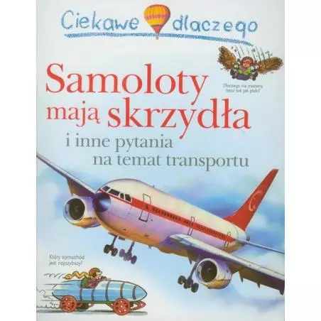 Dlaczego okręty nie toną? Który samolot mógł machać dziobem? Które samochody mają skrzydła? Książka ta w interesujący i zrozumiały sposób odpowiada na pytania dotyczące środków transportu. Wyjaśnia zasadę działania silnika spalinowego, opisuje różne pojazdy lądowe, powietrzne i morskie, przedstawia ciekawostki związane z transportem. Zawiera także sporo informacji o historii i rozwoju tego działu techniki. To zabawna i fascynująca lektura nie tylko dla najmłodszych!