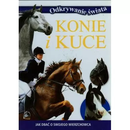 Konie i kuce Najlepszym sposobem na zbudowanie więzi z koniem lub kucem jest częste zajmowanie się nim. Koń lub kuc może być twoim najlepszym przyjacielem – kochaj go i troszcz się o niego. W książce znajdzie informacje jak dbać o ulubionego wierzchowca: jak zrozumieć konie i kucyki, bezpieczne schronienie – stajnia, właściwe odżywianie i nawyki żywieniowe, pastwisko, pielęgnacja i utrzymanie czystości, trening, zdrowie i pierwsza pomoc. Ta bogato ilustrowana seria z pewnością zachwyci młodych czytelników. Ciekawie opracowane informacje, ciekawostki i fascynujące fakty przybliżą wiele zagadnień dotyczących otaczającego nas świata. Czytaj i odkrywaj kolejne tajemnice. W serii „Odkrywanie świata“: Owady i pająki, Koty i kocięta, Świat dinozaurów, Psy i szczenięta, Zwierzęta zagrożone wyginięciem, Mój pierwszy atlas, Konie i kuce, Ludzkie ciało, Rekiny, Ziemia, Młode zwierzęta, Zwierzęta hodowlana, Kosmos, Wieloryby, Rekordy sportowe, Leksykon zwierząt, samochody, Rekordziści wśród zwierząt, samoloty bojowe, Piraci i rabusie, Siedem cudów świata, Węże, Wikingowie, Wulkany i trzęsienia Ziemi, Wielkie budowle i pojazdy, Huragany i tornada, Odkrycia i Wynalazki, Opowieści biblijne: Nowy Testament, Opowieści biblijne: Stary Testament.