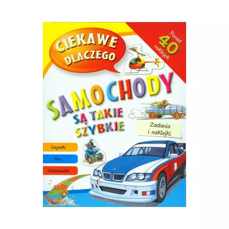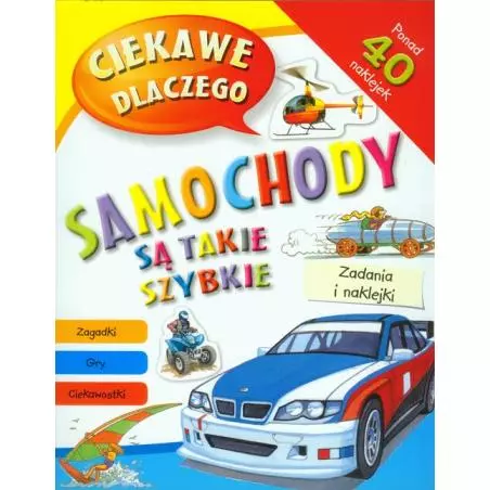 Na stronach tej książki znajdziesz rozmaite ciekawostki na temat samochodów, zabawne zgadywanki, zajmującą grę przygodową oraz mnóstwo naklejek.
