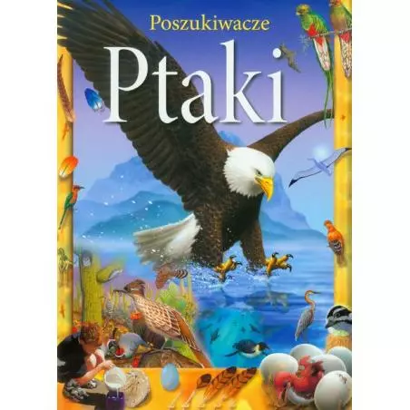 Czy wiecie, że kolibry mogą latać do tyłu? Albo, że flamingi zawdzięczają swój piękny różowy kolor pokarmowi, który jedzą? Na każdej stronie tej wspaniale ilustrowanej, pełnej zdjęć i ciekawostek książki znajdziecie odpowiedzi na tego typu pytania. Znajdziecie tu też wskazówki, które pomogą Wam samodzielnie odkrywać fascynujący świat ptaków.Z życia wzięte – w tych sekcjach znajdziesz wszystko o najważniejszych odkryciach naukowych.Zrób to sam – to ciekawe projekty i eksperymenty, czyli mnóstwo zabawy podczas bliskich spotkań z nauką i naturą.Słowołamacze – są tu ciekawostki dotyczące pochodzenia słów.To niesamowite! - znajdziesz tu nadzwyczajne fakty i liczby.Poszukiwacz – te części prowadzą do innych, podobnych tematów omówionych w książce.POSZUKIWACZE – książki, które zabiorą Cię, dokąd tylko chcesz!W serii tytuły: Kosmos, Skały i minerały, Dinozaury, Trzęsienia ziemi i wulkany, Ciało człowieka, Owady i pająki, Ptaki, Walenie – wieloryby, delfiny, morświny, Rekiny i inne stworzenia morskie.