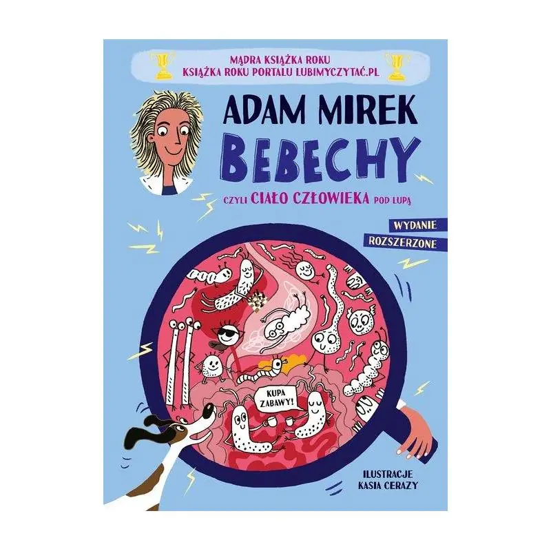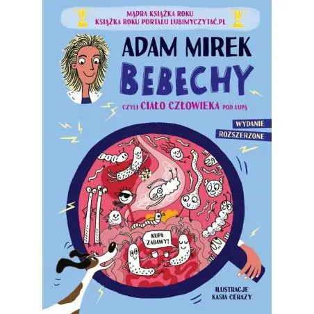 „Bebechy”, kochane przez małych, nagradzane przez dużych (Mądra Książka Roku 2023 dla Dzieci, Książka Roku 2023 w kategorii literatury dziecięcej w plebiscycie portalu Lubimy Czytać, Bestseller Empiku 2023 w kategorii Literatura polska dla dzieci), powracają w rozszerzonym wydaniu! Znana treść, nowa oprawa: twarda okładka, barwione brzegi, oraz dodatkowe wyzwania, ciekawostki i jeszcze więcej stron z informacjami o ciele człowieka! Twoje ciało to zagadkowa maszyna. Używasz go każdego dnia, a wciąż przecież nie wiesz o nim wszystkiego. Coś w nim stuka, huczy, kłuje. Dziwnie pachnie. Ma włosy w niektórych miejscach, a w innych jest zupełnie łyse. Chodź, zajrzymy do wnętrza twojego organizmu. Uroczyście przysięgam: nie cofniemy się przed niczym, żadna (nawet najbardziej obleśna!) tajemnica ludzkiego ciała nas nie powstrzyma. Wślizgniemy się z lupą w sam środek twoich bebechów. Dowiesz się: dlaczego twój oddech pachnie czasami jak oddech zombiaka, jak to się dzieje, że nawet najpyszniejsze lody zamieniają się w… no wiesz w co, dlaczego męczysz się podczas nauki, ale nie wtedy, kiedy oglądasz seriale. Uwaga! Dodatkowy rozdział! A w nim jeszcze więcej wiedzy, miniatlas anatomii, test bebechologiczny, iluzje, eksperymenty i DIY. Podejmij wyzwanie i stwórz model serca! Odkryj wybebeszone tajemnice ludzkiego ciała! ADAM MIREK – trochę szalony i supermądry naukowiec. Młodzi kochają go za to, jak opowiada o nauce w mediach społecznościowych, a dorośli pewnie bardziej docenią fakt, że zrobił doktorat… w dwóch krajach! Autor bestsellerowych książek dla dzieci: Bebechów i Glutologii. Bebechy, czyli ciało człowieka pod lupą zdobyły tytuł Mądrej Książki Roku 2023 dla Dzieci i Książki Roku 2023 w kategorii literatury dziecięcej.