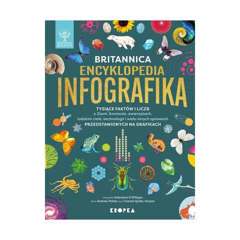 Wyjątkowa encyklopedia, która zawiera 200 infografik opartych na tysiącach zdumiewających faktów i liczb. Książka, w której różne dziedziny nauki oraz sztuka spotykają się, aby odkryć fakty o świecie – o Kosmosie, Ziemi, zwierzętach, ludziach i technologii. Dzięki niej dowiesz się, które zwierzę może skoczyć na odległość dwieście razy większą niż długość jego ciała, ile filiżanek smarków dziennie produkuje twoje ciało, czy porównasz rozmiary największych bestii, jakie kiedykolwiek żyły. Dzięki oszałamiającym grafikom, pięknym kolorowym zdjęciom, a także wywiadom ze specjalistami lepiej zrozumiesz otaczający cię świat.
