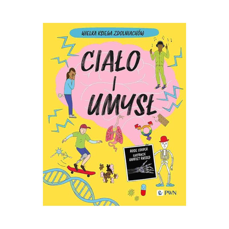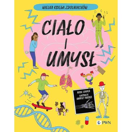 Ta wspaniała, nietypowa książka kierowana jest do małych naukowców – stąd też jej tytuł Wielka Księga Zdolniachów. W środku nasi młodzi badacze będą mogli poznać wyjątkowy, frapujący i niezwykle ciekawy świat naszych ciał i umysłów – stąd jej tytuł: CIAŁO I UMYSŁ. Ta książka to nowatorskie podejście do nauki dla młodych zdolniachów. Znajdą w niej niesamowite, lecz prawdziwe historie, interaktywne zadania i niecodzienne infografiki. Co sprawia, że twoje ciało działa? Czy to wszystko dzieje się w Twoim umyśle? Wybierz się na wycieczkę po ludzkim ciele od stóp do głów i wszystkim, co pomiędzy nimi. Najnowsza odsłona serii Wielka Księga Zdolniachów to przystępne, zabawne i ciekawe wprowadzenie do nauki o ludzkim ciele. Pełne dziwacznych faktów i zdumiewających aktywności – mali mózgomaniacy odkryją wszystko, co trzeba wiedzieć o ciele i genialnym mózgu, który sprawia, że to wszystko działa. Przewodnikiem małych naukowców po tym świecie jest wyjątkowa postać – Czachosław Kość-Uszko, który ma mnóstwo tajnych informacji o sekretach ich ciał. Ta książka to ekscytujące wprowadzenie do często złożonych, czasami obrzydliwych i całkowicie fascynujących funkcji ludzkiego ciała. Zawiera praktyczne ćwiczenia i łatwe eksperymenty,między innymi prowadzenie dziennika kupy i iluzje optyczne. Małe zdolniachy będą mogły sprawdzić też, co dzieje się z jedzeniem, które spożywają, w jaki sposób leki mogą ich oszukać, aby poczuły się lepiej, a także jak i dlaczego śnią. Książkę Wielka Księga Zdolniachów – CIAŁO I UMYSŁadresujemy do ciekawych świata dzieci, które chcą wiedzieć, jak działa ichorganizm i jak ich mózg dba o codzienne funkcjonowanie ciała. Znajdą w niej odpowiedzi zarówno na zagadnienia podstawowe, jak i na dziwaczne pytania dotyczące ciał, w których żyjemy.