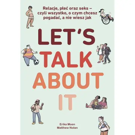 Let’s Talk About It to przemyślana, dobrze opracowana powieść graficzna i przewodnik po wszystkim, co musisz wiedzieć, a nie wiesz, jak o to zapytać. Opowiada o związkach, o przyjaźni, o tożsamości płciowej, o orientacji, anatomii, obrazie ciała, ale też o bezpiecznym seksie, sekstingu, odrzuceniu, edukacji seksualnej i wielu innych ciekawych kwestiach.