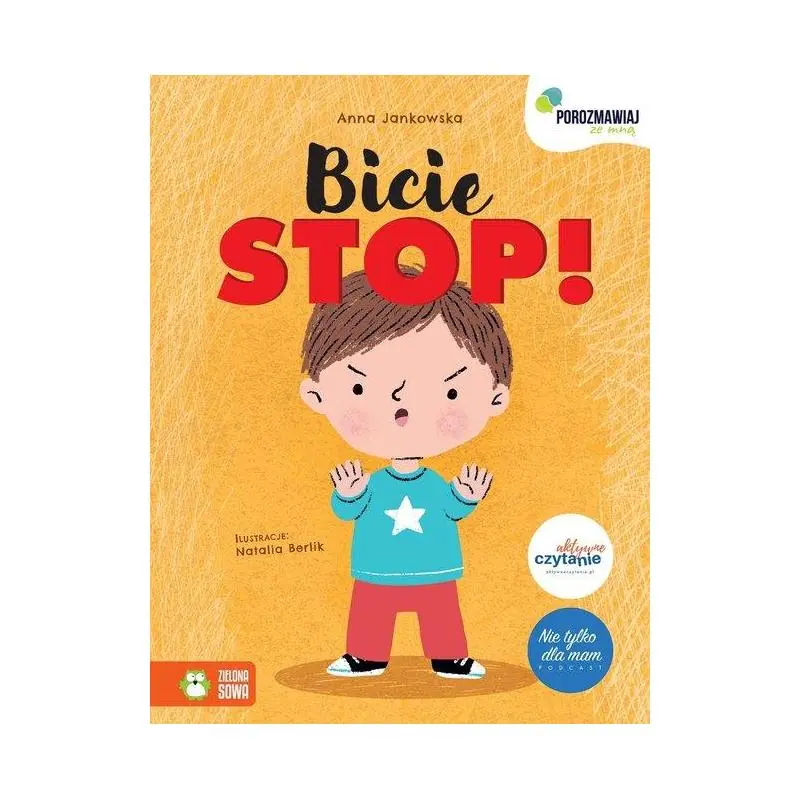 Książka powstała z myślą o dzieciach, którym zdarza się bić innych w złości, i tym, które nie wiedzą, jak reagować, gdy ktoś je atakuje (bije, szczypie, wyrywa zabawki). Opisywane w niej sytuacje mogą mieć miejsce zarówno w przedszkolu czy na placu zabaw, jak i w domu (między rodzeństwem). Publikacja zawiera instruktażowe porady – dla dzieci i rodziców, radzenia sobie ze złością w konkretnych sytuacjach. „Bicie STOP!” to tytuł, który rozpoczyna serię „Porozmawiaj ze mną” autorstwa Anny Jankowskiej, znanej między innymi z internetowej grupy FB Aktywne czytanie. DR ALEKSANDRA PIOTROWSKA POLECA: Kto z nas nie doświadczył problemu ze złoszczącym się kilkulatkiem? Ta książka pokazuje dzieciom, w jaki sposób mogą sobie poradzić ze swoją złością czy zazdrością bez krzywdzenia innych. Bo główne jej przesłanie zawiera się w powtarzanym jak mantra apelu „BICIE STOP – BICIE BOLI”. Co bardzo ważne: autorka nie wmawia dzieciom, że brzydko czy niegrzecznie jest się złościć – zamiast tego uświadamia (i to na przykładach konkretnych sytuacji), jak dziecko może SAMO poradzić sobie ze złością, co może zrobić ZAMIAST bicia innych. Anna Jankowska ma rację – złość to pełnoprawne, potrzebne nam w życiu uczucie, ale już nieduże dzieci trzeba uczyć, jak wyrażać je bez używania pięści. I w tej nauce ta książka może bardzo pomóc.