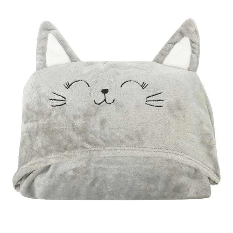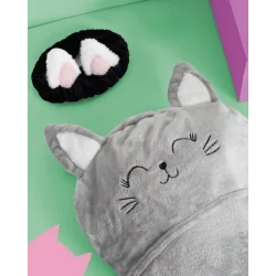 - ozdobiony na górnej krawędzi kapturem w kształcie głowy kota