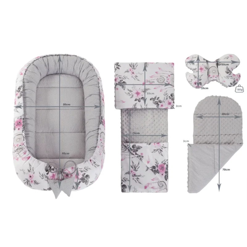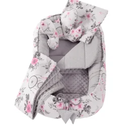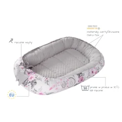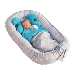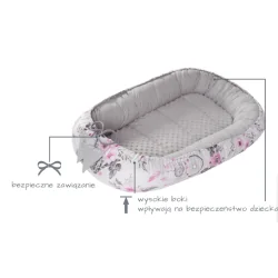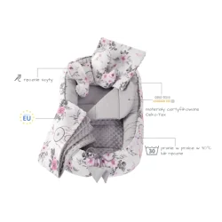 - Bezpieczeństwo snu – kokon ogranicza przestrzeń i zabezpiecza maluszka przed przypadkowym sturlaniem się czy przygnieceniem podczas spania z rodzicami.
