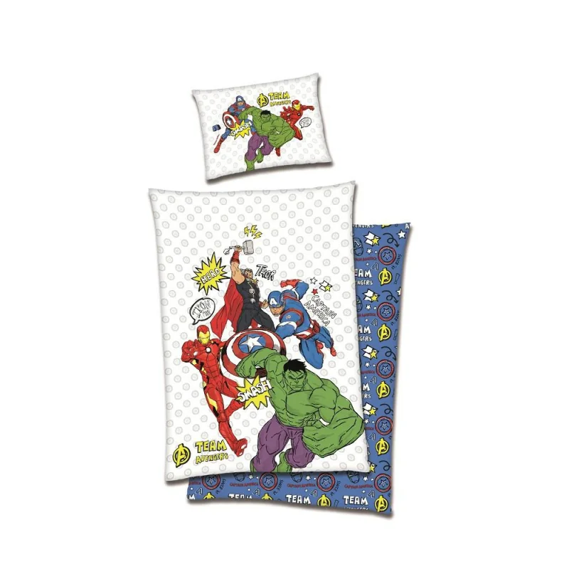 Pościel bawełniana 160×200 Avengers to idealny wybór dla fanów superbohaterów z uniwersum Marvela. Wykonana z wysokogatunkowej, 100% bawełny, zapewnia miękkość, przewiewność i komfortowy sen. Kolorowy wzór z postaciami takimi jak Iron Man, Kapitan Ameryka, Thor i Hulk