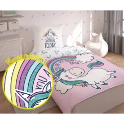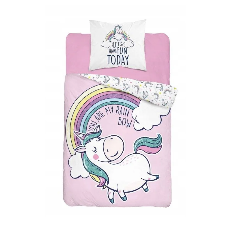 Pościel Unicorn łączy funkcjonalność z bajkowym designem, który pobudza wyobraźnię dziecka i wprowadza do pokoju pozytywny klimat. Dzięki 100% bawełnie, gwarantuje spokojny i bezpieczny sen przez cały rok.