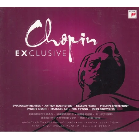 Muzyka F. Chopina na 2CD. Najpiękniejsze utwory na fortepian solo i z towarzyszeniem orkiestry. Usłyszymy m.in. obydwa koncerty fortepianowe, walce, nokturny, etiudy, preludia, scherza, fragment Tria fortepianowego. Utwory wykonują znani pianiści światowego formatu: A. Rubinstein, Ph. Entremont, E. Ax, E. Kissin, J. Browning, E. Osińska, Yo-Yo Ma, F.