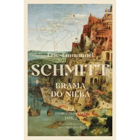 W drugiej części serii Podróż przez czas Éric-Emmanuel Schmitt z odłamków najpiękniejszych i najważniejszych dla naszej kultury mitów układa zachwycającą epickim rozmachem mozaikę. Losy pary bohaterów – pełne namiętności i konfliktów, rozstań i powrotów – mistrzowsko łączą się z historią wieży Babel, Abrahama oraz Gilgamesza. Brama do nieba to także studium władzy, tyranii i ludzkiej pychy, w obliczu wojny i narastających napięć społecznych uderzająca swoją aktualnością.
