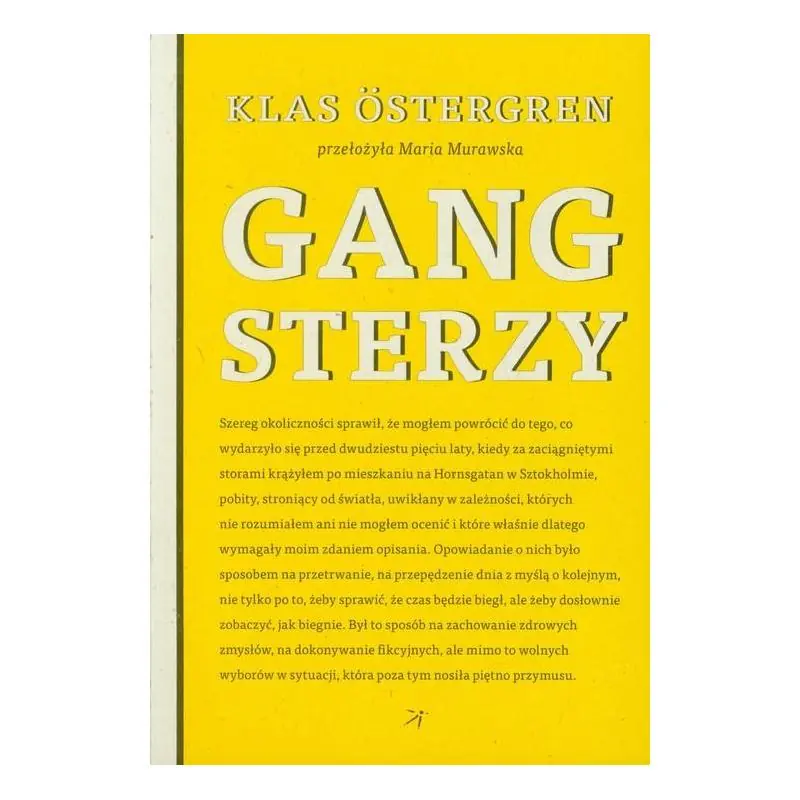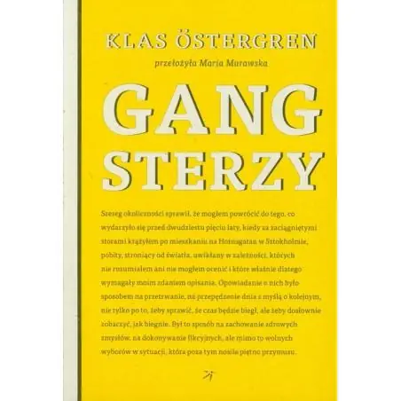 Powieść Gentlemani z roku 1980 była przełomem w karierze Klasa Ostergrena. Jego nowa książka, Gangsterzy, rozpoczyna się w momencie, w którym skończyli się Gentlemani. Klucząc i zaskakując, opowiada o samooszukiwaniu, które jednoczy i rozdziela dwie osoby, o brzemiennym w skutki spotkaniu w Wiedniu i miejscu znajdującym się w cieniu radiowym, z dala od sieci 3G i przewodów elektrycznych, o nielegalnym handlu bronią i o róży zwanej kwiatem zła. Fabuła prowadzi nas od końca lat 70. aż do czasów współczesnych, do rzeczywistości panującej dwadzieścia pięć lat później, kiedy patrzący z dystansu narrator dostrzega, co się tak naprawdę wydarzyło. W ten sposób dopełniają się dwie historie o niemożliwych ludziach, niemożliwej miłości i niemożliwej prawdzie.