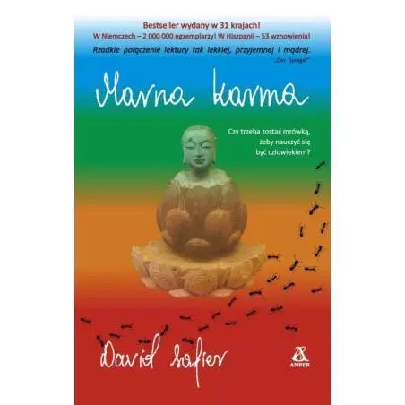 Czy trzeba zostać mrówką, żeby nauczyć się być człowiekiem? Na to pytanie musi odpowiedzieć sobie sławna prezenterka telewizyjna, która po śmierci odradza się jako mrówka i w kolejnych wcieleniach zbiera dobrą karmę dobrymi uczynkami, po to, żeby odpokutować swoje winy i odnaleźć szczęście. „Dzień, w którym umarłam, nie bardzo był przyjemny. I to wcale nie z powodu śmierci. Jej udało się zająć dopiero szóste miejsce w rankingu najgorszych momentów całego dnia...” – zaczyna swoją opowieść Kim – trzydziestodwuletnia kobieta sukcesu. Najsławniejsza prezenterka telewizyjna, żona mężczyzny idealnego i matka cudownej pięciolatki. Najgorszy moment numer jeden nastąpił po jej nagłej śmierci, kiedy to ogromna mrówka, która przedstawiła się jako Budda, poinformowała Kim, że ponieważ nie była dobra dla innych, odrodziła się jako mrówka. I teraz ma się postarać być lepsza. I dalej Kim opowiada, jak to w kolejnych wcieleniach zbierała dobrą karmę dobrymi uczynkami. Historia zabawna, absurdalna, galopująca przez coraz bardziej nieprzewidywalne zdarzenia i kolejne progi reinkarnacji. Przez różne kraje i światy podziemne. Mamy tu Casanovę w różnych wcieleniach i Buddę. Wielki świat i świat zwykłych ludzi. Zaskakujące