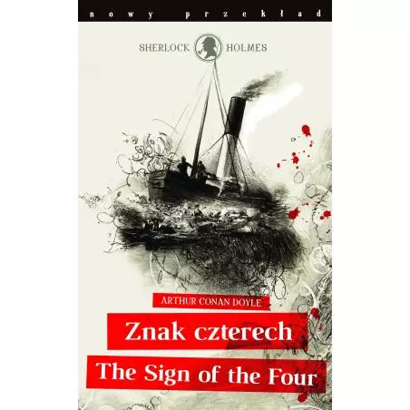 Druga z kolei powieść o przygodach Sherlocka Holmesa. Do detektywa amatora zgłasza się panna Mary Morstan, która od śmierci ojca dostaje co roku, w ten sam dzień, piękną perłę. Holmes i Watson usiłują odkryć, kto i dlaczego je przysyła i co znaczy tajemniczy napis „Znak czterech”. Śledztwo odsłania mroczne tajemnice sprzed wielu lat. Piękna kobieta, wielki skarb, chciwość i zbrodnia...
