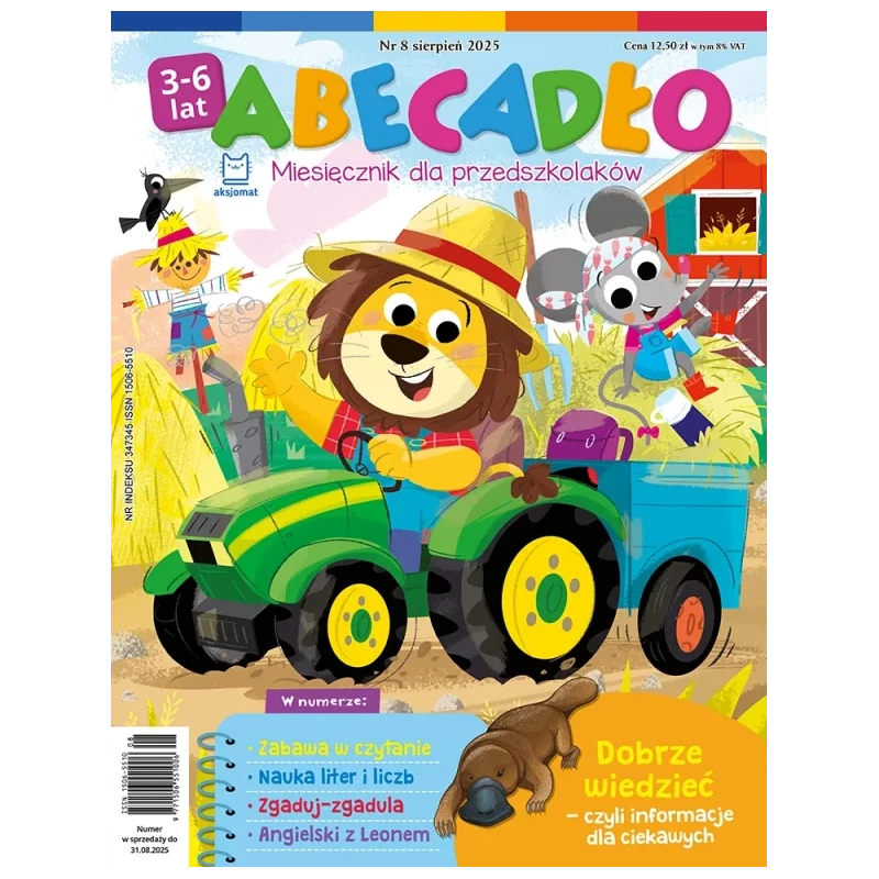 „Abecadło” 8/2025 to edukacyjny miesięcznik dla przedszkolaków, łączący naukę liter i pierwszych umiejętności czytania z zabawą. Numer zawiera kolorowanki, łamigłówki, proste zadania rozwijające logiczne myślenie oraz krótkie wierszyki i historyjki, które wspierają kreatywność i rozwój dzieci w wieku przedszkolnym.
