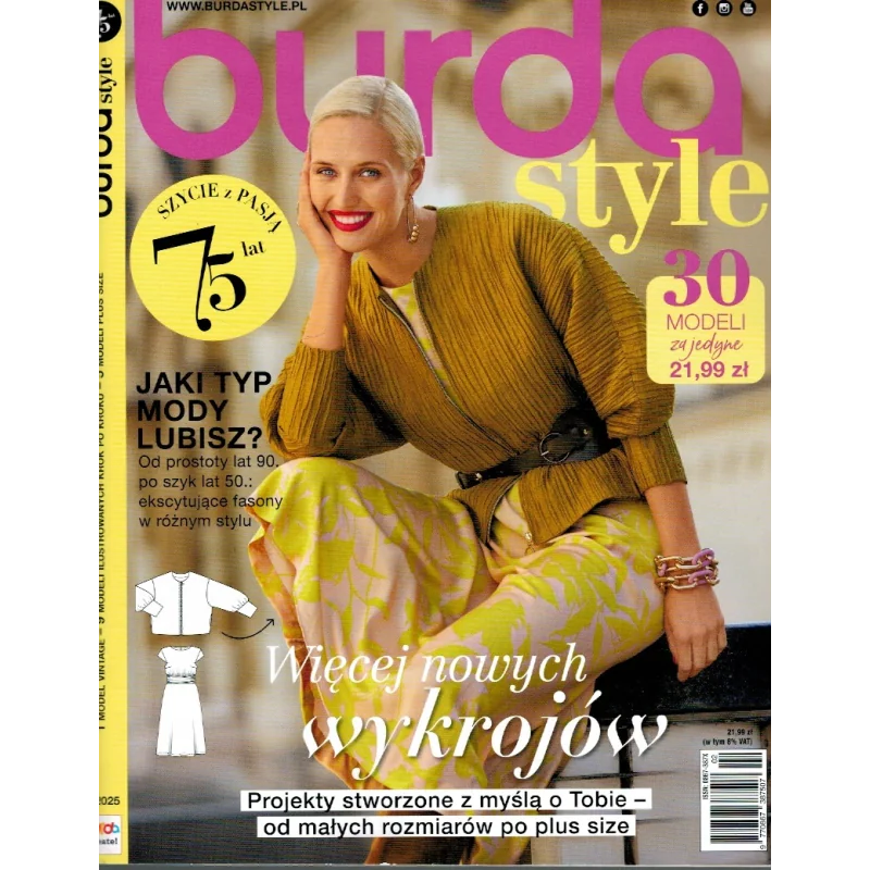 „Burda Style” nr 2/2025 to wydanie popularnego magazynu modowego i krawieckiego „Burda Style”, przygotowane z myślą o miłośnikach szycia i projektowania ubrań. Co to jest „Burda Style”? „Burda Style” to miesięcznik o modzie i szyciu, który ukazuje się w wielu krajach i językach. W każdym numerze znajdziesz kolekcje odzieży, dodatków i projektów DIY (zrób to sam) wraz z dokładnymi wykrojami i opisami szycia. Co zawiera wydanie nr 2/2025 Nowe projekty ubrań i dodatków do samodzielnego uszycia — ponad 30 modeli w różnych stylach od klasyki po nowoczesne trendy. Moda inspirowana różnymi epokami i stylami, np. lata 50., 70., 90. Wykroje w różnych rozmiarach, również modele o większych wymiarach (tzw. Curvy). Opisy, wskazówki i instrukcje ułatwiające szycie nawet mniej zaawansowanym osobom. Często pojawiają się także poradniki i inspira‑cje dotyczące dodatków czy projektów DIY. Język i wydanie To polskojęzyczne wydanie magazynu z 2025 roku, oznaczone numerem 2/2025. W Polsce jest ono sprzedawane jako czasopismo hobbystyczne z wykrojami i opisami modeli do uszycia