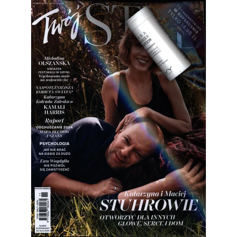 Twój Styl 12/2024 – to grudniowe wydanie popularnego polskiego miesięcznika „Twój Styl”, znanego z szerokiej tematyki lifestyle’owej, modowej, psychologicznej i kulturowej, skierowanego głównie do kobiet zainteresowanych inspirującymi treściami oraz refleksją nad współczesnym życiem. Informacje o numerze Wydanie: 12/2024 (grudzień 2024) Data publikacji: około 8 listopada 2024 Liczba stron: ok. 276 Język: polski Cena wydania: ok. 12,99 – 14,99 zł (różni się w zależności od punktu sprzedaży) Co znajdziesz w środku To wydanie magazynu „Twój Styl” zawiera różnorodne teksty o tematyce lifestyle’owej i osobistej, łącząc wywiady, felietony, porady psychologiczne i modowe oraz refleksje społeczno‑kulturowe. Z przykładów treści z tego numeru wynika, że w magazynie pojawiły się m.in.: Wywiady z artystami i osobami znanymi – np. rozmowy z Andrzejem Chyrą oraz Natalią Kukulską. Rozmowy o życiu i relacjach międzyludzkich – np. porady psychologiczne z Ewą Woydyłło o tym, jak budować relacje rodzinne, szczególnie w okresie świątecznym. Moda i styl z dojrzałością – teksty o tym, jak moda zmienia się wraz z wiekiem i jak wyrażać siebie poprzez styl. Kulinarne wstawki – elementy dotyczące tego, jak kiedyś jadano oraz inspiracje związane z tradycją i świętami. Charakter magazynu „Twój Styl” to luksusowy miesięcznik kobiecy z tradycją (ukazuje się od 1990 r.), czytany przez szerokie grono odbiorczyń w całej Polsce. Łączy treści o modzie, urodzie, psychologii, relacjach, kulturze i życiu codziennym, często w głębszym, refleksyjnym tonie niż typowe magazyny lifestylowe