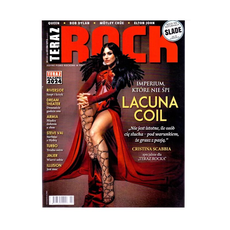 To lutowe wydanie popularnego miesięcznika „Teraz Rock” – jednego z najważniejszych polskich czasopism o muzyce rockowej, metalowej i pokrewnych gatunkach. Numer zawiera bogatą mieszankę wywiadów, artykułów, recenzji i relacji koncertowych skierowanych do fanów muzyki gitarowej i alternatywnej. W środku znajdziesz m.in.: obszerny materiał o legendzie rocka Slade (18 stron), ranking „Teraz Najlepsi 2024” – podsumowanie najciekawszych wydawnictw i wydarzeń minionego roku, wywiady z takimi artystami jak Lacuna Coil, Riverside, Steve Vai, Dream Theater, Jinjer, Armia, Turbo i inni, artykuły o klasykach rocka (Queen, Mötley Crüe) oraz tematy specjalne, relacje z koncertów i festiwali, recenzje płyt, koncertów i nowości muzycznych. Magazyn „Teraz Rock” to stałe źródło informacji i opinii dla miłośników muzyki rockowej – zarówno fanów sceny krajowej, jak i zagranicznych gwiazd.