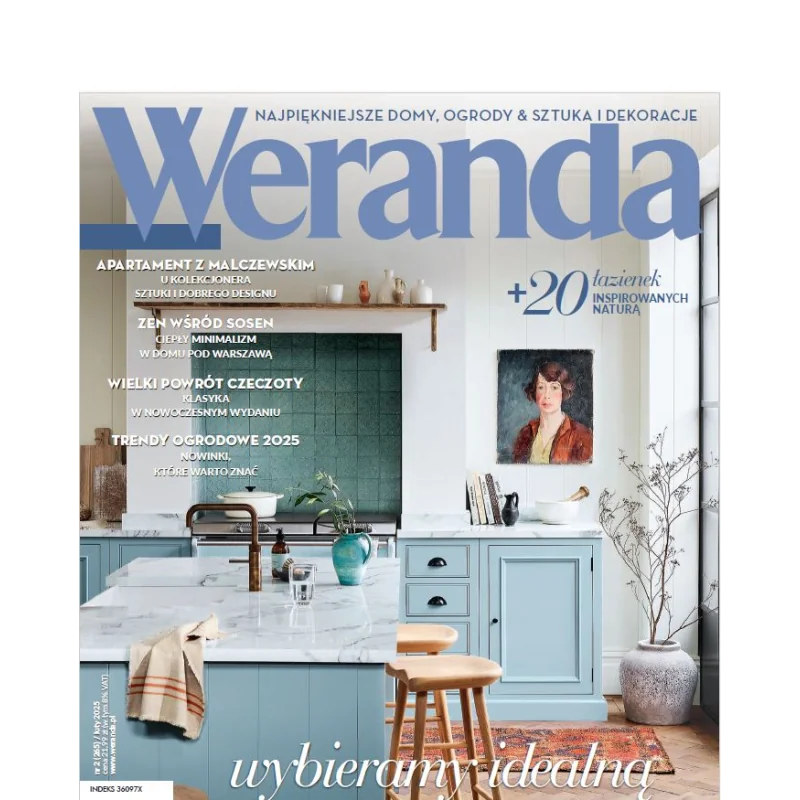 Weranda 2/2025 – numer poświęcony harmonii we wnętrzach i naturze. Znajdziesz w nim eleganckie mieszkania i domy, inspirowane sztuką, klasyką i minimalistycznym stylem, praktyczne porady aranżacyjne (podłogi, łazienki), trendy ogrodowe oraz naturalne, spokojne dekoracje.