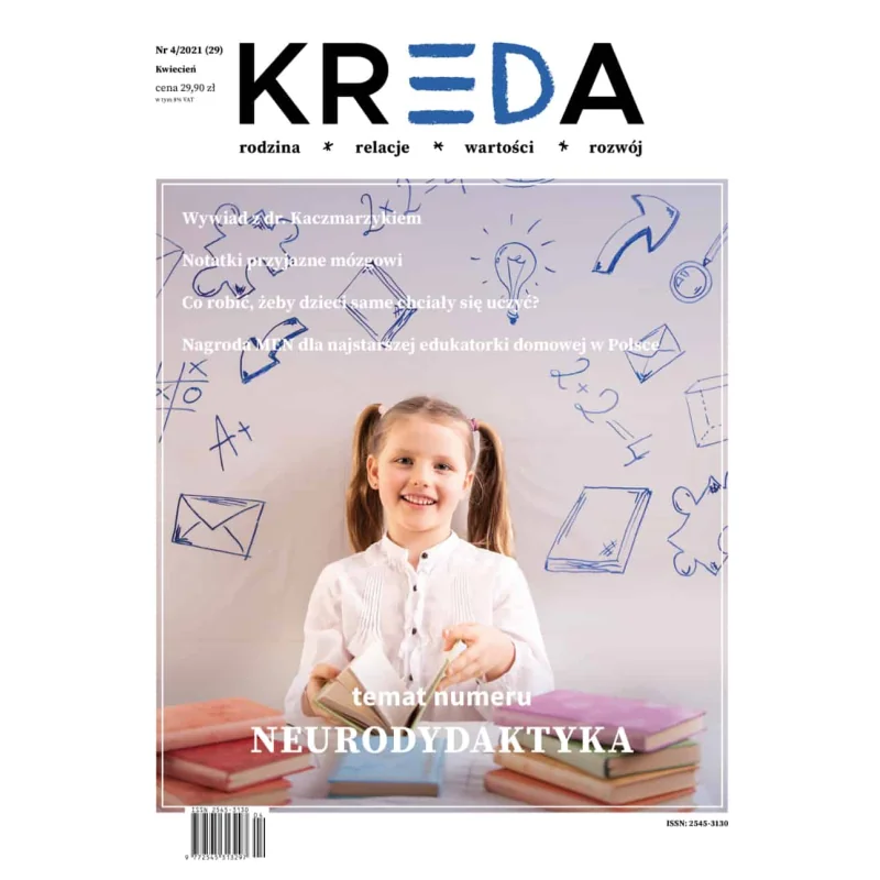 Kreda”, kwiecień 2021 to numer czasopisma edukacyjno-kulturalnego skierowanego głównie do nauczycieli, uczniów oraz osób zainteresowanych edukacją i kulturą. Wydanie zawiera artykuły dotyczące nauczania, rozwoju szkolnictwa, metod dydaktycznych oraz materiałów pomocniczych do pracy z uczniami. Pojawiają się też treści kulturalne, literackie i refleksje związane z edukacją oraz życiem szkoły.
