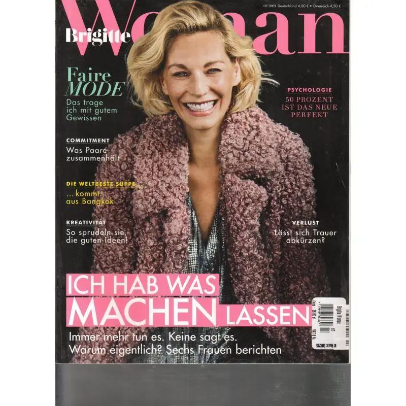 „Brigitte Woman” 2/2021 to niemieckie czasopismo dla kobiet dojrzałych, skupione na stylu życia, zdrowiu i rozwoju osobistym. Wydanie zawiera artykuły o relacjach, psychologii, urodzie, modzie oraz zdrowiu fizycznym i psychicznym. Magazyn porusza także tematy związane z pracą, samorealizacją i codziennym życiem kobiet w różnym wieku, oferując inspiracje i praktyczne porady.
