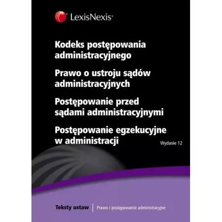 Publikacja została przygotowana specjalnie z myślą o studentach wydziałów prawa i administracji. Zawiera ona teksty ustaw: Kodeks postępowania administracyjnego, Prawo o ustroju sądów administracyjnych, Prawo o postępowaniu przed sądami administracyjnymi i ustawy o postępowaniu egzekucyjnym w administracji wraz z wykazami aktów zmieniających i