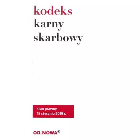 Kodeks karny skarbowy” broszura – zawiera jednolity tekst ustawy z dnia z dnia 10 września 1999 r. Kodeks karny skarbowy oraz skorowidz przedmiotowy KKS. Poprzez system przypisów publikacja umożliwia studentom i praktykom łatwe śledzenie zmian prawnych. Zaletą książki jest jej praktyczny, poręczny format, przejrzysty układ graficzny i niska cena. Łatwą orientację w materiale umożliwia obszerny skorowidz. Stan prawny: styczeń 2019 r. Przepisy wchodzące w życie później niż podany stan prawny aktu prawnego ale już ogłoszone w Dzienniku Ustaw podajemy w ramkach z zachowaniem przepisu w dotychczas obowiązującym brzmieniu.