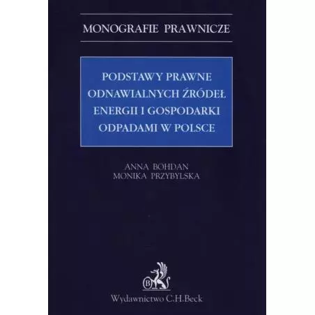 Publikacja „Podstawy prawne odnawialnych źródeł energii i gospodarki odpadami w Polsce” zawiera omówienie unijnych, w tym krajowych, przepisów i orzecznictwa w zakresie rozwoju i promocji OZE w Polsce, w tym głównie poprzez odpowiednią gospodarkę odpadami. Jako pierwsze opracowanie naukowe na rynku polskim ukazuje zbieżność przepisów w zakresie gospodarki odpadami z przepisami dotyczącymi rozwoju odnawialnych źródeł energii w Polsce. Czytelnik ma możliwość zapoznania się z takimi zagadnieniami jak: unijne podstawy prawne rozwoju OZE i gospodarki odpadami w Polsce, wpływ prawa unijnego na rozwój OZE w Polsce oraz na rozwój gospodarki odpadami w Polsce, krajowe podstawy rozwoju OZE w Polsce a także gospodarki odpadami w Polsce. Książka stanowi pierwsze opracowanie naukowe na rynku krajowym, które łączy kwestię odpowiedniego gospodarowania odpadami z rozwojem OZE w Polsce. Publikacja stanowi spójne opracowanie, które w przejrzysty sposób ukazuje istotę prawa polskiego w podjętym temacie.