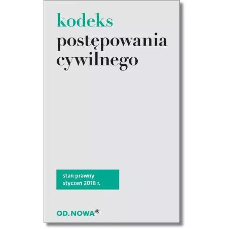 Kodeks postępowania cywilnego oraz wybrane przepisy zmieniające KPC (wyciągi). Poprzez system przypisów publikacja umożliwia studentom i praktykom łatwe śledzenie zmian prawnych. Zaletą książki jest jej praktyczny, poręczny format, przejrzysty układ graficzny i niska cena. Łatwą orientację w materiale umożliwia obszerny skorowidz. Stan prawny: 5 stycznia 2018 r. Przepisy wchodzące w życie później niż podany stan prawny aktu prawnego ale już ogłoszone w Dzienniku Ustaw podajemy w ramkach z zachowaniem przepisu w dotychczas obowiązującym brzmieniu.