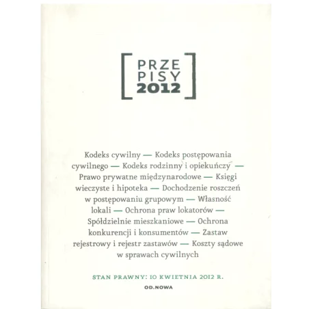Publikacja powstała z myślą o studentach prawa, aplikantach oraz prawnikach praktykach. Zawiera: Kodeks cywilny, Kodeks postępowania cywilnego, Kodeks rodzinny i opiekuńczy, Prawo prywatne międzynarodowe, ustawę o księgach wieczystych i hipotece, ustawę o dochodzeniu roszczeń w postępowaniu grupowym, ustawę o własności lokali, ustawę o ochronie praw lokatorów, mieszkaniowym zasobie gminy i o zmianie Kodeksu cywilnego, ustawę o spółdzielniach mieszkaniowych, ustawę o ochronie konkurencji i konsumentów, ustawę o zastawie rejestrowym i rejestrze zastawów oraz ustawę o kosztach sądowych w sprawach cywilnych. . Książkę wyróżnia: przejrzysty layout, duża, ułatwiająca czytanie czcionka, skorowidze przedmiotowe, spisy treści zamieszczone przed każdą z ustaw oraz nagłówki artykułów.