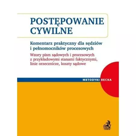 POSTĘPOWANIE CYWILNE. KOMENTARZ PRAKTYCZNY DLA SĘDZIÓW I PEŁNOMOCNIKÓW PROCESOWYCH. WZORY PISM SĄDOWYCH I PROCESOWYCH Z PRZYKŁADOWYMI STANAMI FAKTYCZNYMI, LINIE ORZECZNICZE, KOSZTY SĄDOWE to praktyczne omówienie procedury cywilnej poprzez wszystkie jej instytucje oraz etapy postępowania wraz z wzorami pism procesowych oraz schematami i