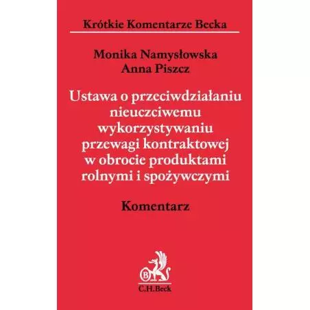 Prezentowana publikacja jest kompleksowym omówieniem ustawy z 15.12.2016 r. o przeciwdziałaniu nieuczciwemu wykorzystaniu przewagi kontaktowej w obrocie produktami rolnymi i spożywczymi (Dz.U. z 2017 r. poz. 67). Ustawa wprowadziła wiele innowacyjnych rozwiązań, których celem jest rozwiązywanie sporów pomiędzy dostawcami a odbiorcami produktów spożywczych i rolnych, m.in.: nowe postępowanie prowadzone przez Prezesa UOKiK – o charakterze indywidualnym w zakresie nieuczciwego wykorzystania przewagi kontraktowej, zasady przeciwdziałania nieuczciwym zachowaniom w relacjach wyłącznie wertykalnych (przyjęte po raz pierwszy w prawie polskim), zasady przeciwdziałania nieuczciwemu zachowaniu wyłącznie w sektorze rolnym i spożywczym (przyjęte po raz pierwszy w prawie polskim), kary pieniężne grożące przedsiębiorcom stosującym niedozwolone praktyki, które są bardzo wysokie. Dzieło w sposób kompleksowy omawia relacje pomiędzy niniejszą ustawą a ustawą o zwalczaniu nieuczciwej konkurencji, ustawą o przeciwdziałaniu nieuczciwym praktykom rynkowym, a także ustawą o ochronie konkurencji i konsumentów. Jest to pierwszy komentarz na rynku o tej tematyce. W publikacji szczegółowo omówiono najważniejsze zagadnienia, tj.: praktyki nieuczciwie wykorzystujące przewagę kontraktową, postępowanie w sprawie praktyk nieuczciwie wykorzystujących przewagę kontraktową, przepisy o karach pieniężnych, zmiany w przepisach obowiązujących. Komentarz skierowany jest do bardzo szerokiego kręgu odbiorców. Polecany jest on w szczególności adwokatom, radcom prawnym, sędziom, urzędnikom oraz ekonomistom. Będzie również przydatny dla przedsiębiorców z branży rolnej i spożywczej.