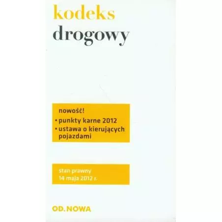 Najnowsza aktualizacja kodeksu drogowego. Publikacja zawiera tekst jednolity ustawy, rozporządzenie o znakach i sygnałach drogowych oraz regulacje dotyczące punktów karnych i mandatów. Zaletą książki jest jej praktyczny, poręczny format i przejrzysty układ graficzny. Łatwą orientację w materiale umożliwia obszerny skorowidz. Kodeksy broszurowe