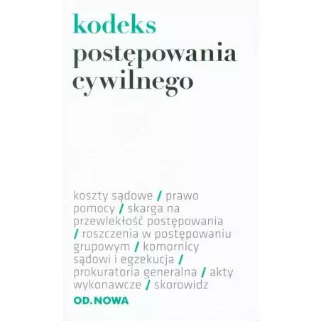 Opracowany przez były zespół redakcyjny Wydawnictwa Park kompletny, zaktualizowany zbiór aktów prawnych, w którym prócz tekstów jednolitych zamieszczono najważniejsze ustawy oraz akty wykonawcze. Zawartość: Kodeks postępowania cywilnego, koszty sądowe, prawo pomocy, skarga na przewlekłość postępowania, roszczenia w postępowaniu grupowym,