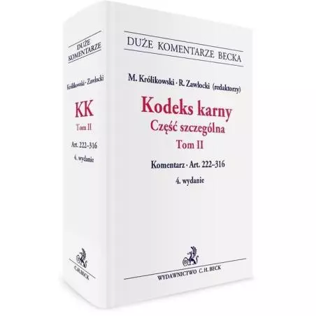 Tom II komentarza do części szczególnej Kodeksu karnego w sposób wyczerpujący i zarazem bardzo praktyczny prezentuje poszczególne typy przestępstw, zawarte w rozdziałach XXIX – XXXVIII (art. 222-316).