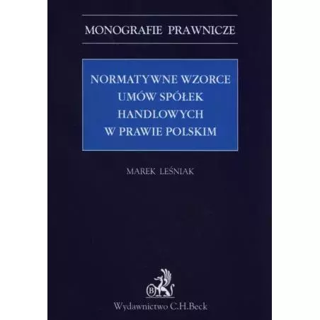 Monografia ta jest pierwszym opracowaniem poświęconym problematyce normatywnych wzorców umów spółek handlowych w prawie polskim. Autor dokonuje oceny normatywnych wzorców umów spółek handlowych udostępnianych w systemie teleinformatycznym, czyli wzorca umowy spółki jawnej, komandytowej oraz z o.o. Publikacja zawiera obszerne omówienie