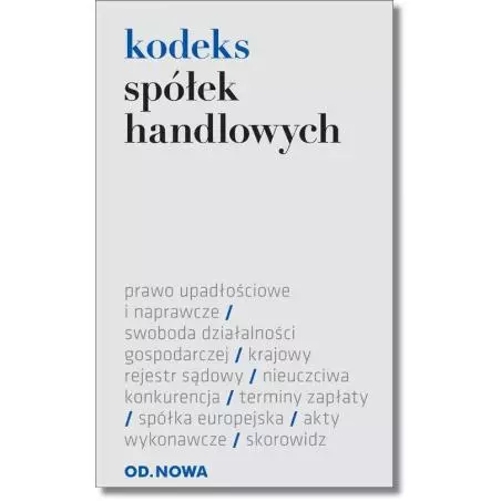 ?Wybór przepisów regulujących obrót gospodarczy w Polsce. Polecany wszystkim teoretykom i praktykom zajmującym się szeroko rozumianą działalnością gospodarczą. Na zbiór składają się ustawy: Kodeks spółek handlowych, Prawo upadłościowe i naprawcze, ustawa o swobodzie działalności gospodarczej, o Krajowym Rejestrze Sądowym, o zwalczaniu