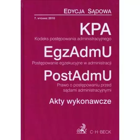 Seria EDYCJA SĄDOWA stanowi doskonałą pomoc przede wszystkim dla sędziów,aplikantów, prawników - praktyków i wszystkich tych, dla których znajomośćobowiązujących przepisów stanowi warunek prawidłowego wykonywania zawodu.