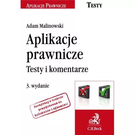 Aplikacje prawnicze – testy i komentarze to: szczegółowe omówienie blisko 400 pytań na aplikację ogólną, radcowską i adwokacką z 5 ostatnich lat, analiza pytań z wszystkich dziedzin prawa – poczynając od prawa cywilnego i rodzinnego, przez prawo handlowe, prawo pracy, procedury cywilną i karną, prawo karne materialne, wykroczeń, karne skarbowe, a na zagadnieniach ustrojowych kończąc – dodatkowo w formie opisowej, materiał usystematyzowany w tabelach i wykresach, dzięki czemu łatwiej jest opanować wiedzę, omówienie najważniejszego i najnowszego orzecznictwa sądowego, tabela z wiedzy ogólnej w tym pojęć z zakresu kryminalistyki, kryminologii i psychiatrii.