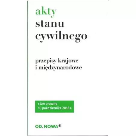 „Prawo o a aktach stanu cywilnego” broszura – zawiera jednolity tekst ustawy z dnia 28 listopada 2014 r. Poprzez system przypisów publikacja umożliwia studentom i praktykom łatwe śledzenie zmian prawnych. Zaletą książki jest jej praktyczny, poręczny format, przejrzysty układ graficzny i niska cena. Łatwą orientację w materiale umożliwia obszerny skorowidz. Stan prawny: 10 października 2018 r. Przepisy wchodzące w życie później niż podany stan prawny aktu prawnego ale już ogłoszone w Dzienniku Ustaw podajemy w ramkach z zachowaniem przepisu w dotychczas obowiązującym brzmieniu.
