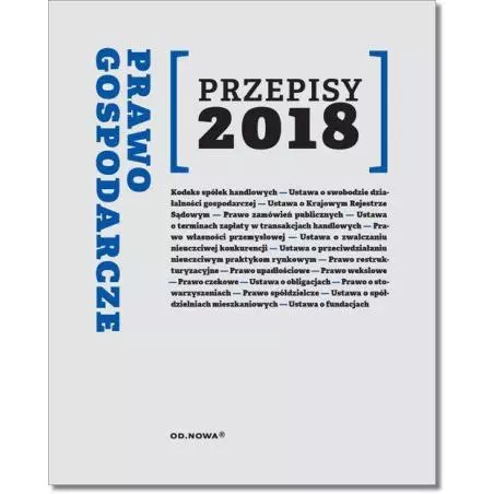Przepisy 2018 Prawo gospodarcze – zawiera jednolite teksty ustaw: – Kodeks spółek handlowych — ustawa o swobodzie działalności gospodarczej — ustawa o Krajowym Rejestrze Sądowym — Prawo zamówień publicznych — Ustawa o terminach zapłaty w transakcjach handlowych — Prawo własności przemysłowej — Ustawa o zwalczaniu nieuczciwej