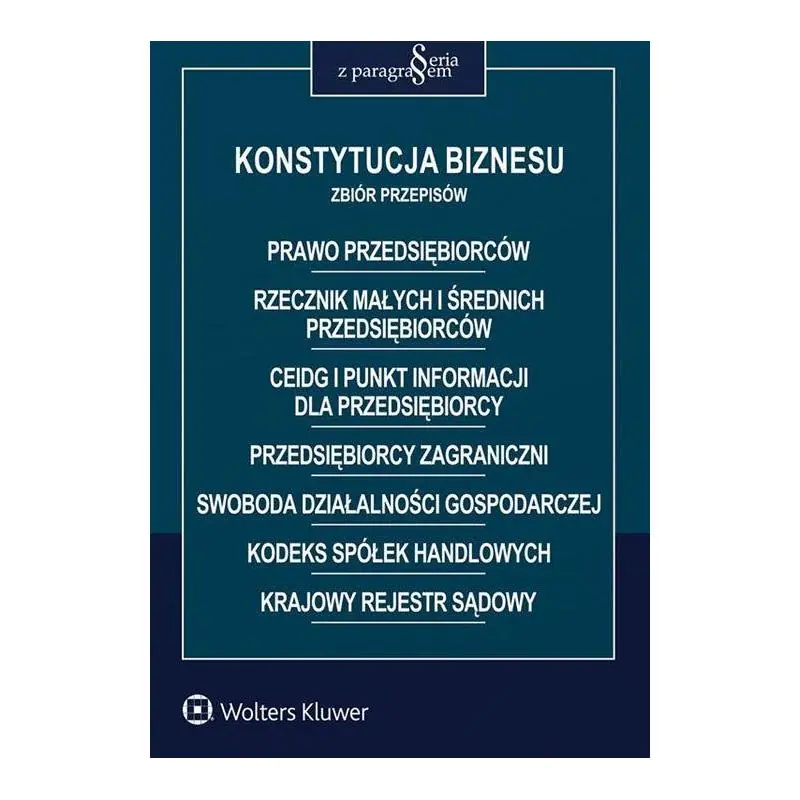 W zbiorze zamieszczono ustawy tworzące tzw. Konstytucję biznesu:- Prawo przedsiębiorców - reguluje ogólne zasady w zakresie podejmowania, wykonywania i zakończenia działalności gospodarczej na terytorium Rzeczypospolitej Polskiej, w tym wiążące przedsiębiorców oraz organy władzy publicznej w ich relacjach z przedsiębiorcami;- o Rzeczniku Małych i Średnich Przedsiębiorców - wprowadza nową instytucję Rzecznika Małych i Średnich Przedsiębiorców, który stoi na straży praw tych grup przedsiębiorców, w szczególności poszanowania zasady wolności działalności gospodarczej, pogłębiania zaufania przedsiębiorców do władzy publicznej, bezstronności i równego traktowania, zrównoważonego rozwoju, zasady uczciwej konkurencji i poszanowania dobrych obyczajów oraz słusznych interesów przedsiębiorców;- o Centralnej Ewidencji i Informacji o Działalności Gospodarczej i Punkcie Informacji dla Przedsiębiorcy - określa zasady funkcjonowania CEIDG i PIP, a także zadania dotyczące ewidencjonowania oraz udostępniania informacji o przedsiębiorcach będących osobami fizycznymi;- o zasadach uczestnictwa przedsiębiorców zagranicznych i innych osób zagranicznych w obrocie gospodarczym na terytorium Rzeczypospolitej Polskiej - normuje podejmowanie i wykonywanie działalności gospodarczej przez osoby zagraniczne na terytorium Polski, czasowe oferowanie lub świadczenie usług przez osoby zagraniczne na terytorium Polski oraz zasady tworzenia przez osoby zagraniczne będące przedsiębiorcami oddziałów i przedstawicielstw w Polsce;- Przepisy wprowadzające ustawę - Prawo przedsiębiorców oraz inne ustawy dotyczące działalności gospodarczej - wdraża rozwiązania przewidziane w ustawach z pakietu Konstytucji biznesu.Zasadniczo nowe przepisy wejdą w życie 30 dni od dnia ogłoszenia.W publikacji zamieszczono również ustawy:- o swobodzie działalności gospodarczej, która traci moc z dniem wejścia w życie ww. ustaw;Kodeks spółek handlowych;- o Krajowym Rejestrze Sądowym wraz z przepisami wprowadzającymi;- wyciąg z ustawy z 26 stycznia 2018 r. o zmianie ustawy o Krajowym Rejestrze Sądowym oraz niektórych innych ustaw (Dz.U. poz. 398 ze zm.).Artykuły ustaw zostały opatrzone tytułami objaśniającymi ich sens. W książce zamieszczono także skorowidze rzeczowe pomocne w odnalezieniu poszczególnych zagadnień.