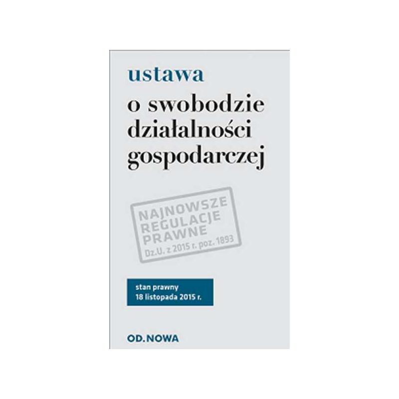 Nowa publikacja Wydawnictwa Od.Nowa zawiera tekst jednolity ustawy o swobodzie działalności gospodarczej. Przy ostatnich zmianach widnieją przypisy redakcyjne, a przepisy oczekujące na wejście w życie zostały zamieszczone w ramkach.Do ustawy dołączono skorowidz rzeczowy, a jej artykuły opatrzono headlinami. Pozycja szczególnie warta uwagi ze względu na obszerną nowelizację, która wejdzie w życie w maju 2016r. Broszura zawiera Dz.U.z 2015 r. poz.1893