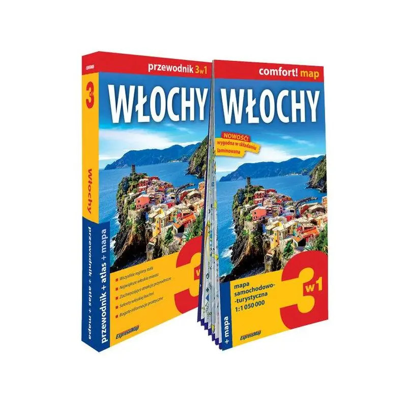 Całe Włochy w jednym tomie. Spacer wśród starożytnych zabytków Rzymu, podziwianie arcydzieł Michała Anioła i Leonarda da Vinci we florenckiej Galerii Uffizi, zabawa na karnawale w Wenecji, wizyta w przykrytych popiołem Wezuwiusza Pompejach, a może pizza w Neapolu? Tysiące kilometrów piaszczystych plaż Półwyspu Apenińskiego, Sycylii i Sardynii, łagodne, zielone wzgórza, na których przycupnęły średniowieczne miasteczka, ośnieżone górskie szczyty czekające na zdobycie. Słynna włoska kuchnia: kawa, spaghetti, pizza i risotto w wielu odsłonach. Te i inne atrakcje Italii pomoże odkryć przewodnik ExpressMap z serii 3w1. Nowa jakość wśród przewodników – wyjątkowe połączenie barwnych opisów i szczegółowych map: • mapy tras zwiedzania przedstawiające lokalizację wszystkich opisywanych miejsc, • bogata treść – historia i kultura, przyroda i tradycje, ciekawostki i anegdoty, • przydatne informacje praktyczne – dni i godziny otwarcia obiektów, ceny biletów, transport publiczny, noclegi, pogoda, • liczne informacje o lokalnej kuchni, • przejrzysty układ graficzny umożliwiający łatwe wyszukiwanie informacji, • szczegółowy atlas Włoch, w którym zaznaczono miejsca opisane w przewodniku, • dwustronnie laminowana mapa dołączona do przewodnika.
