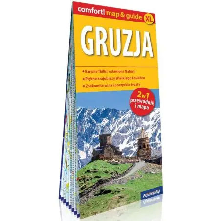 Gruzja - Barwne Tbilisi, nadmorskie Batumi - Piękne krajobrazy Wielkiego Kaukazu - Znakomite wina i poetyckie toasty Od urzekających starochrześcijańskich monastyrów, przez imponujące skalne miasta Uplistsikhe i Vardzia, po kurorty nad Morzem Czarnym. Dla aktywnych – wycieczki górskie na pięciotysięczny Kazbek i do malowniczych jezior Koruldi, a na wzmocnienie – placek chaczapuri i pierożki chinkali. Comfort! map&guide XL „Gruzja” wprowadzi w niezwykły świat gościnnego kraju na styku Europy i Azji. Map&guide w nowej odsłonie – większy format i jeszcze więcej treści: - zajmujące opisy kilkudziesięciu niezwykłych miejsc wartych odwiedzenia, - łatwa nawigacja: atrakcje z przewodnika ponumerowane i zaznaczone na mapach, - poręczny format, wygoda składania i trwałość, - mapy w dogodnych dla turysty skalach: Gruzji (1:450 000), Swanetii (1:75 000), Kazbeku (1:75 000), plany Tbilisi (1:25 000) i Batumi (1:30 000), - przydatne informacje praktyczne: dni i godziny otwarcia obiektów, wskazówki dotyczące transportu, - informacje o lokalnej kuchni, - ciekawostki i kolorowe fotografie.