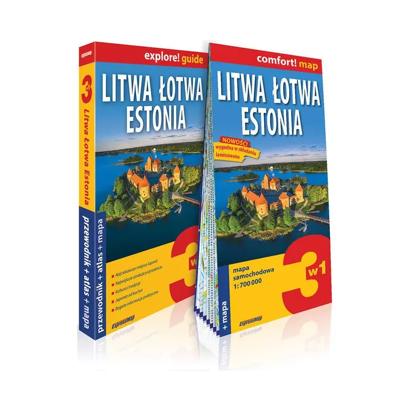 Litwa Łotwa Estonia Największe atrakcje Litwy: tajemnicza Góra Krzyży i galeria socrealistycznych posągów pod gołym niebem, wsie rodem z literatury kresów, prastare klasztory. Śladami polskich romantyków w Wilnie – Ostra Brama, klasztor Bazylianów, cmentarz na Rossie. Niezapomniane zakątki Łotwy: dawne sowieckie bazy i nowoczesna Ryga – od monumentalnej katedry, przez Muzeum Motoryzacji, po olbrzymi Targ Centralny. Najciekawsze miejsca Estonii: malownicze wyspy, jeziora i wodospady, średniowieczny zamek, w którym mieszka Biała Dama, oraz niezwykłe muzea w Tallinie. Nowa jakość wśród przewodników – wyjątkowe połączenie barwnych opisów i szczegółowych map: - mapy tras zwiedzania przedstawiające lokalizację wszystkich opisywanych miejsc, - bogata treść – historia i kultura, przyroda i tradycje, ciekawostki i anegdotki, - przydatne informacje praktyczne – dni i godziny otwarcia obiektów, ceny biletów, transport publiczny, noclegi, pogoda, - przejrzysty układ graficzny umożliwiający łatwe wyszukiwanie informacji, - szczegółowy atlas, w którym zaznaczono miejsca opisane w przewodniku, - dwustronnie laminowana mapa dołączona do przewodnika.
