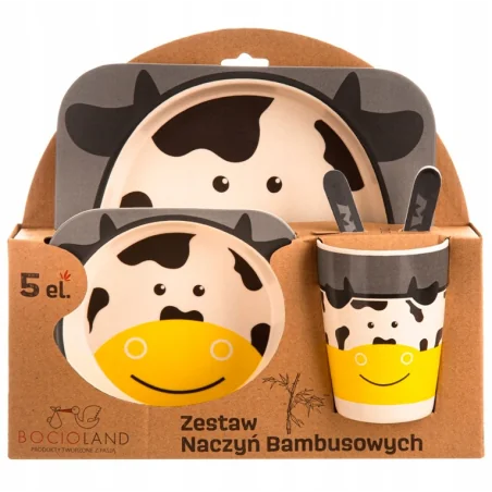 Jest to zestaw naczyń z włóknem bambusa dla dzieci. Wykonany z naturalnych, biodegradowalnych komponentów, przeznaczonych do kontaktu z żywnością, produkt jest całkowicie wolny od Bisfenolu A. Idealny do codziennego użytku. Zestaw naczyń można myć ręcznie lub w zmywarce do naczyń. Dzięki temu utrzymasz go w doskonałej czystości. Nie należy wkładać naczyń do mikrofali i piekarnika.